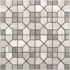 Geo Hexagon Wooden Beige Marble Mosaic Tile