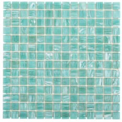 Mixed Blue Green Swirls Squares Glass Pool Tile