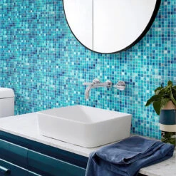 Lake Blue Mixed Squares Glass Tile