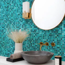 Lagoon Blue Mixed Squares Glass Tile