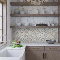 Boho Brown And White Mixed Squares Glass Tile