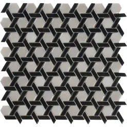 Black And White Weaved Hexagon Glass Mosaic Tile