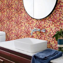 Cherry Sunset Mixed Squares Glass Tile