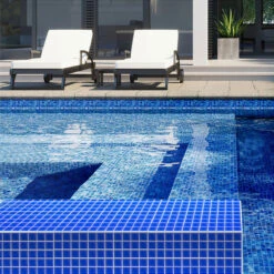 Cloud Blue Grey Mixed Squares Glass Pool Tile