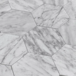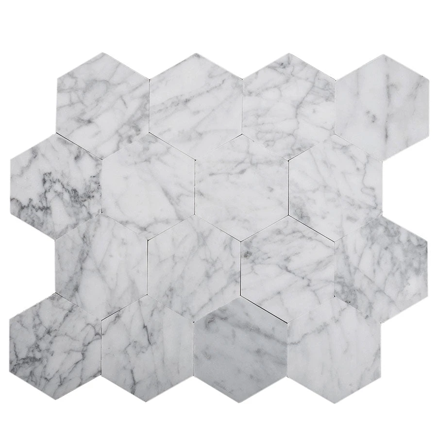 Give your home or rental house an instant upgrade with these 2.5″ Carrara Hexagon peel and stick tile sheets! Slices of real marble are backed by a high-grade adhesive to make them a quick and easy remodel option. Each Carrara hexagon tile measures 2.5″ with a beautiful natural striation that varies from piece to piece!