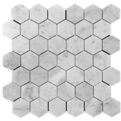 Sold by: Sheet Sheet Size: 11.8″ x 11.8″ Chip Size: 1.9×1.9″/48×48 mm Thickness: 3/8” Material: Bianco Carrara Color: White Finish: Honed Mounting type: Mesh Mounted |