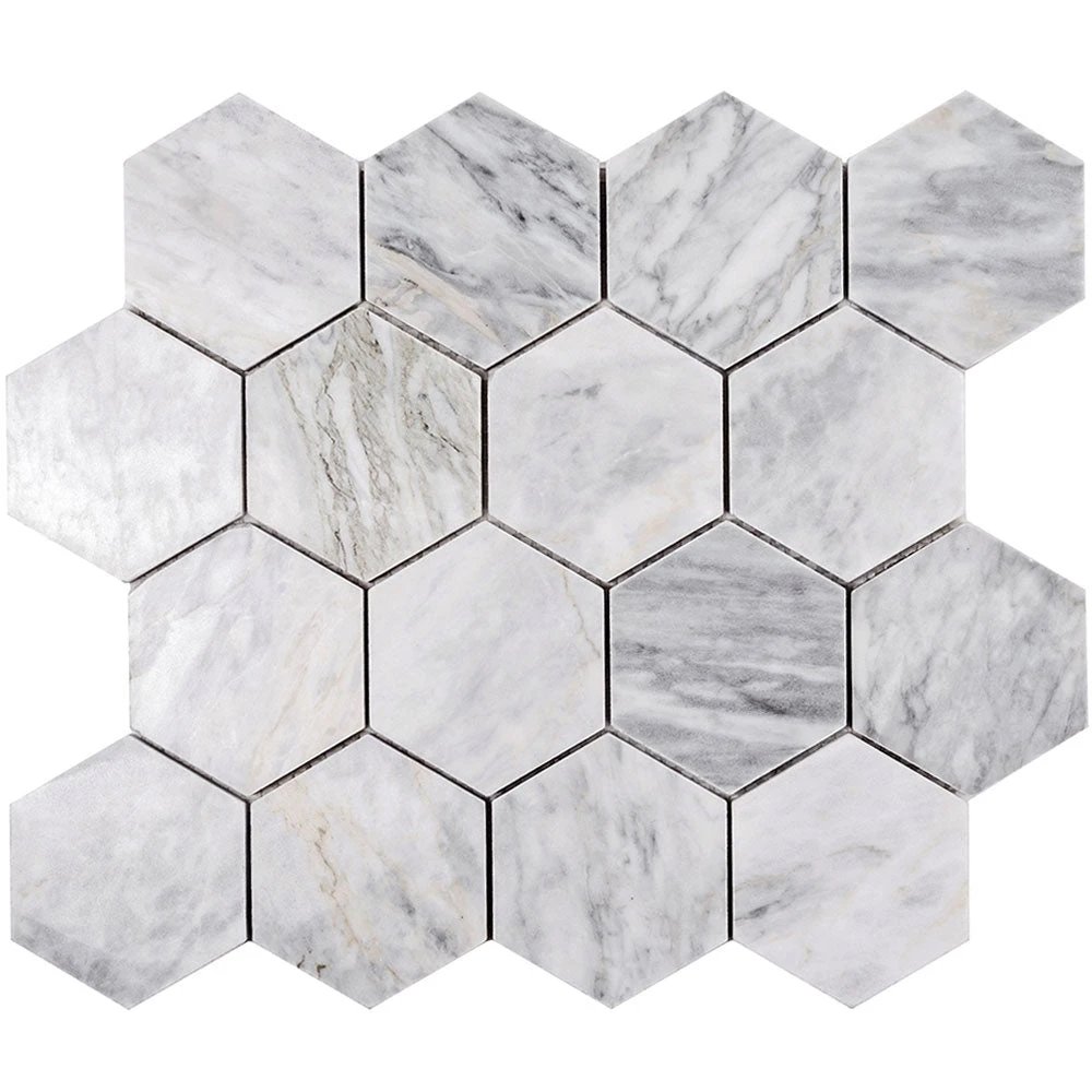 | Sold by: Sheet Sheet Size: 13.2 x 12″ Chip Size: 3×3″ Chip size mm: 75×75 Width: 13.2 Length: 12 Material: Calacatta Bluette Thickness: 3/8″ Color: Gray Finish: Polished Mounting type: Mesh Mounted Packing info: