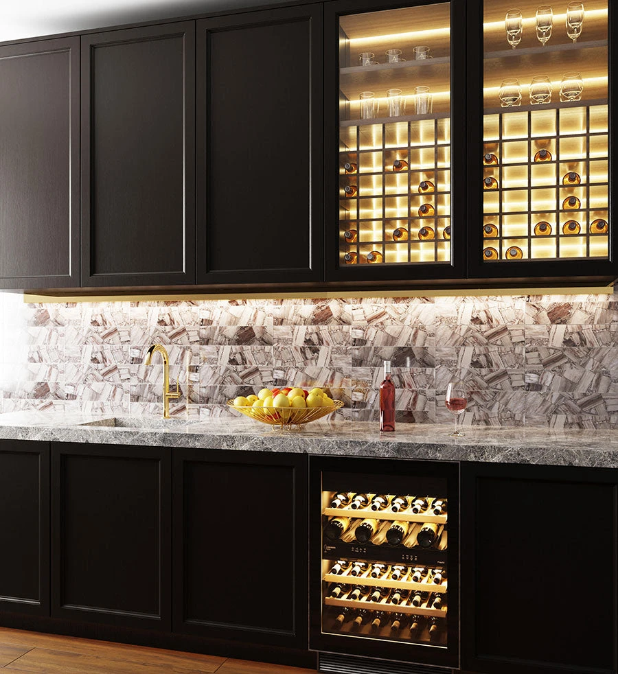 There are endless styling options with the neutral tones in the varied shale patterns – they make a great complement to a contemporary palette with black cabinet paint and gold fixtures, or the warm stone colors pair beautifully with home decor in blue, green, white, or tan! The versatility of the color palette and the endless potential for installation make this a great option for just about any home renovation project or quick interior update!