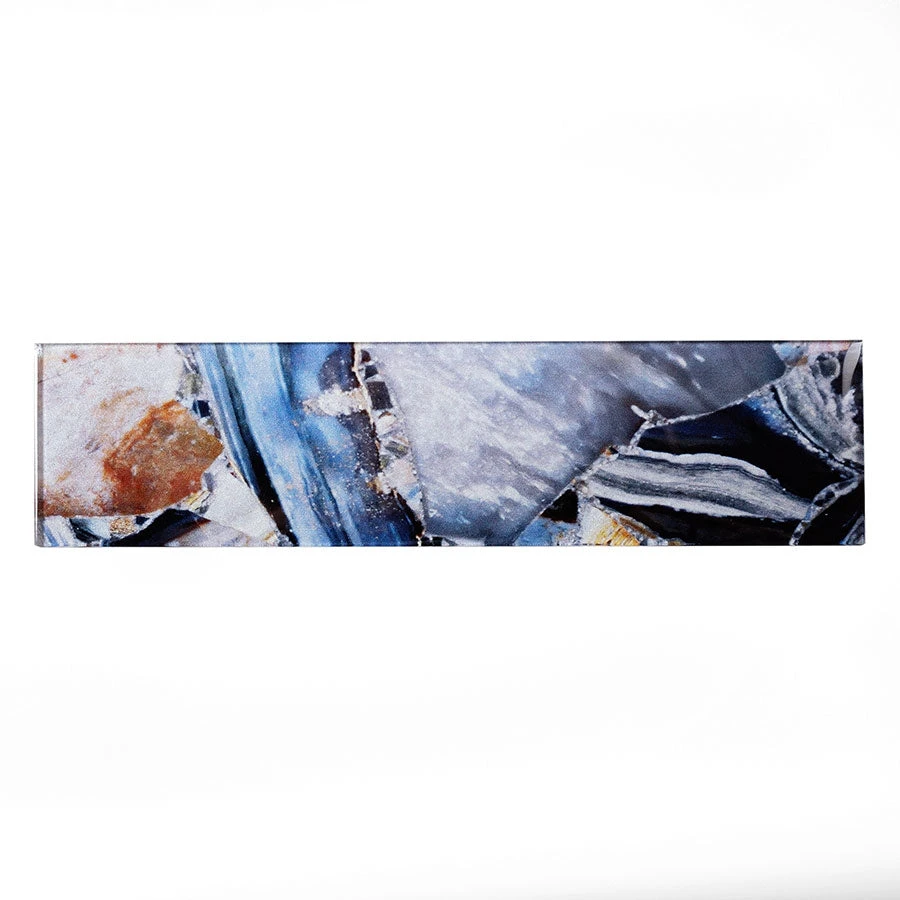Love the look of blue agate slices and geode crystals? We wanted to bring that amazing semi-precious stone look to a building material that could be used almost anywhere – now we have 3″ x 12″ Gold and Blue Agate Glass Tile! Take the look of a classic glass subway tile and add rich blue lace agate slice designs by inkjet printing on the back of glass – the look of raw crystal with the polished finish and sturdy material of a glass tile! These smooth finish tiles are a great fit anywhere you would like to include a patterned detail – add a modern bohemian backsplash to your kitchen or add the soothing look of agate gemstones to a blue bathroom design! These glass tiles can be used in a wide range of installation locations – create a stunning shower, relaxing bathtub surround, stunning kitchen tile design, tiled fireplace surround – all with the look of blue agate stones!