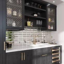 These classic 3″x6″ glass subway tiles take your walls to the next level! The clear mirrored finish and beveled edge can instantly turn a dark room into a fabulous space, thanks to the reflective finish that amplifies natural light. Transform a dark powder room with a mirrored wall behind your vanity, or add these subway tiles under your cabinets to create a kitchen backsplash that opens up your space! These beautiful mirror tiles can be used on indoor walls, including your bathroom, mudroom, shower, fireplace surround, or a dazzling accent wall!