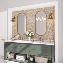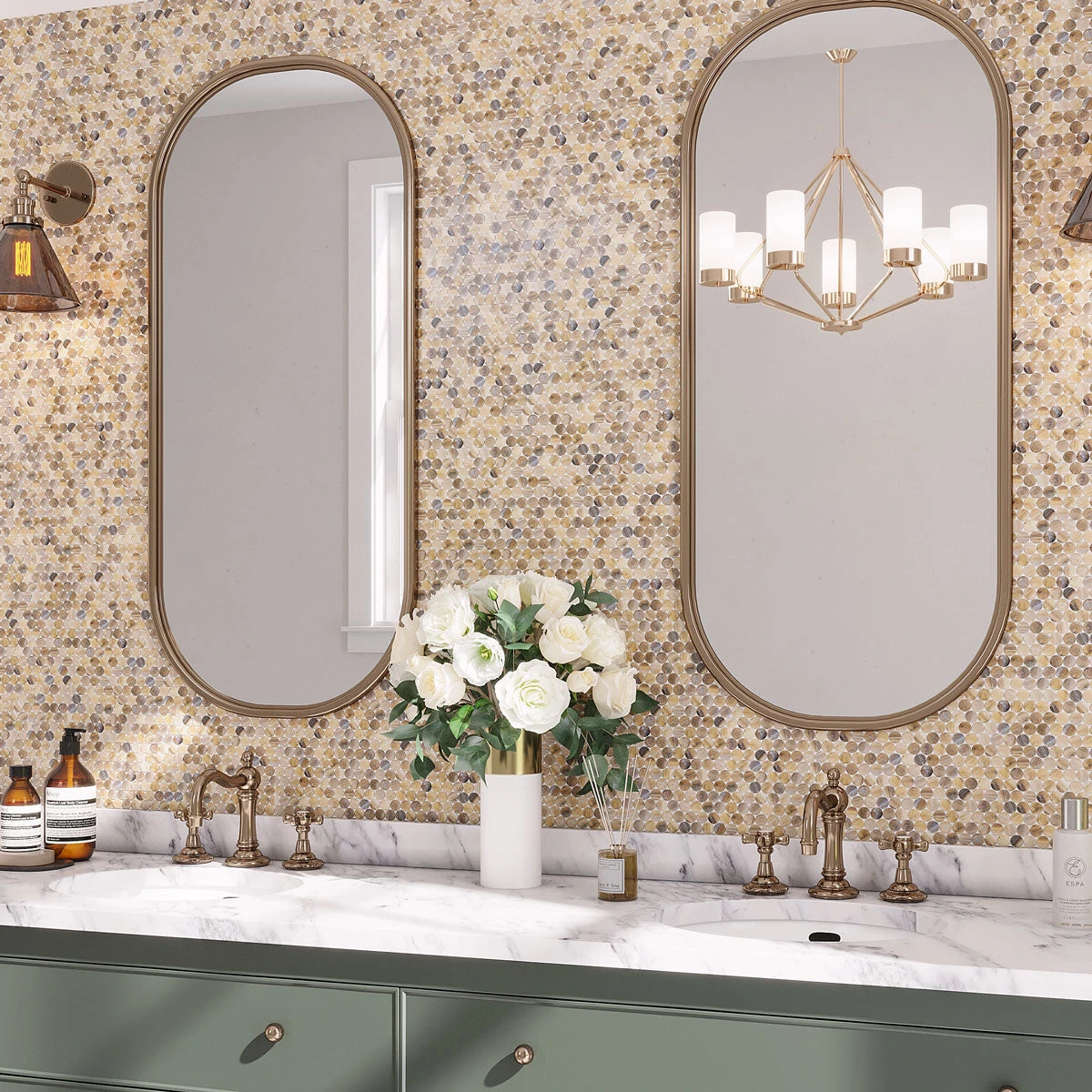 If you want a universal solution for any design, our Agate tile is the perfect match. Beige and brown tones blend in any color theme and the penny tile pattern brings a slight vintage feel. Glass mosaics are popular for different types of interior installations including kitchens, bathrooms, steam rooms, and hallways. They do not fade and last a long time which makes them a perfect outdoor tile for swimming pools and backyard patio decks. A mesh mount backing saves your time and effort during installation. Create a colorful mosaic accent, a warm agate backsplash for your kitchen or bathroom, or a glass tile pool waterline- no matter where you use them, these glass penny tiles are the best way to make a splash in style!