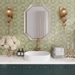Upgrade your walk-in shower enclosure, bathtub surround, or vanity backsplash with a striking green bathroom tile. This alluring encaustic detail is sure to add a vibrant and bold touch, easily becoming the room’s focal point. In kitchen design, this enchanting pattern creates a feeling of warmth and elegance in any interior style. Play up the decorative design with an installation that spans the entire wall for greater style impact. And while this backsplash tile pairs flawlessly with neutral-toned or white-painted kitchen cabinets, don’t shy away from crafting an eclectic look by pairing with colorful cabinets.