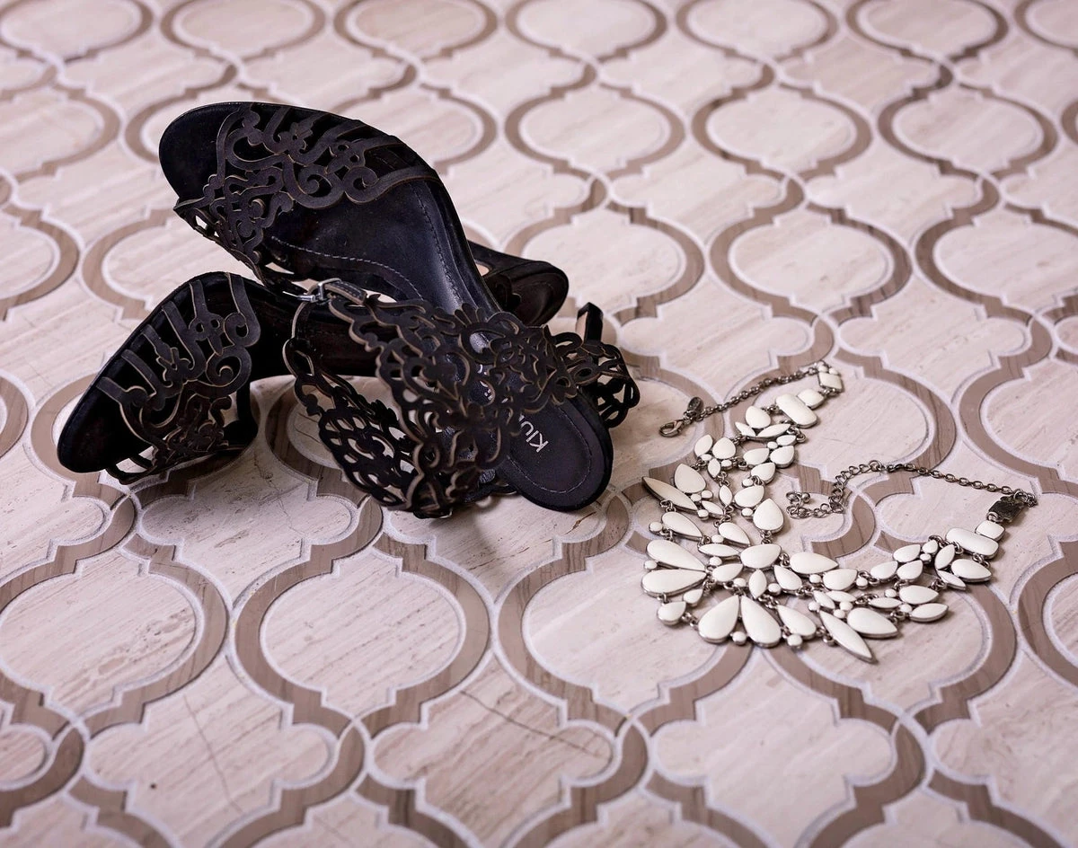 It’s time to spruce up your space! Arabesque-shaped tile will give your space a new look and feel with its features that are truly unique and beautiful. They can instantly dress up a room and have been considered as one of the most desirable forms of art from different regions throughout history–from Arab lands to European influences. If you have been looking to elevate your space these beige and grey wood look tiles are a great way to add style and luxury to any room and are versatile enough to be used as a wall tile or for flooring. You can use them in the bathroom near the sink or tub, or in front of the mirror and sink. Pair with mixed metal hardware and accents to create a modern, bright ambiance.