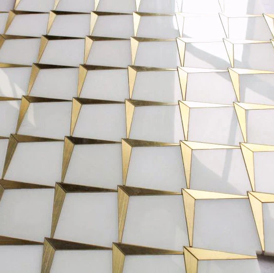 | Sold by: Sheet Sheet Size: 13.5″ x 14.5″ Chip Size: 4.8 x 4.1″/ 123 x 105 mm Thickness: 3/8″ Material: Paper White, Brass Color: White Finish: Polished Mounting type: Mesh Mounted Packing info: