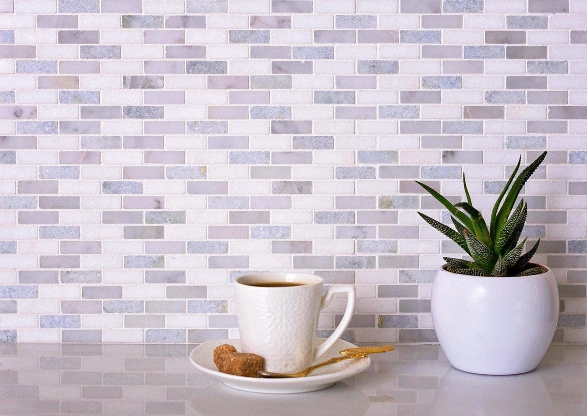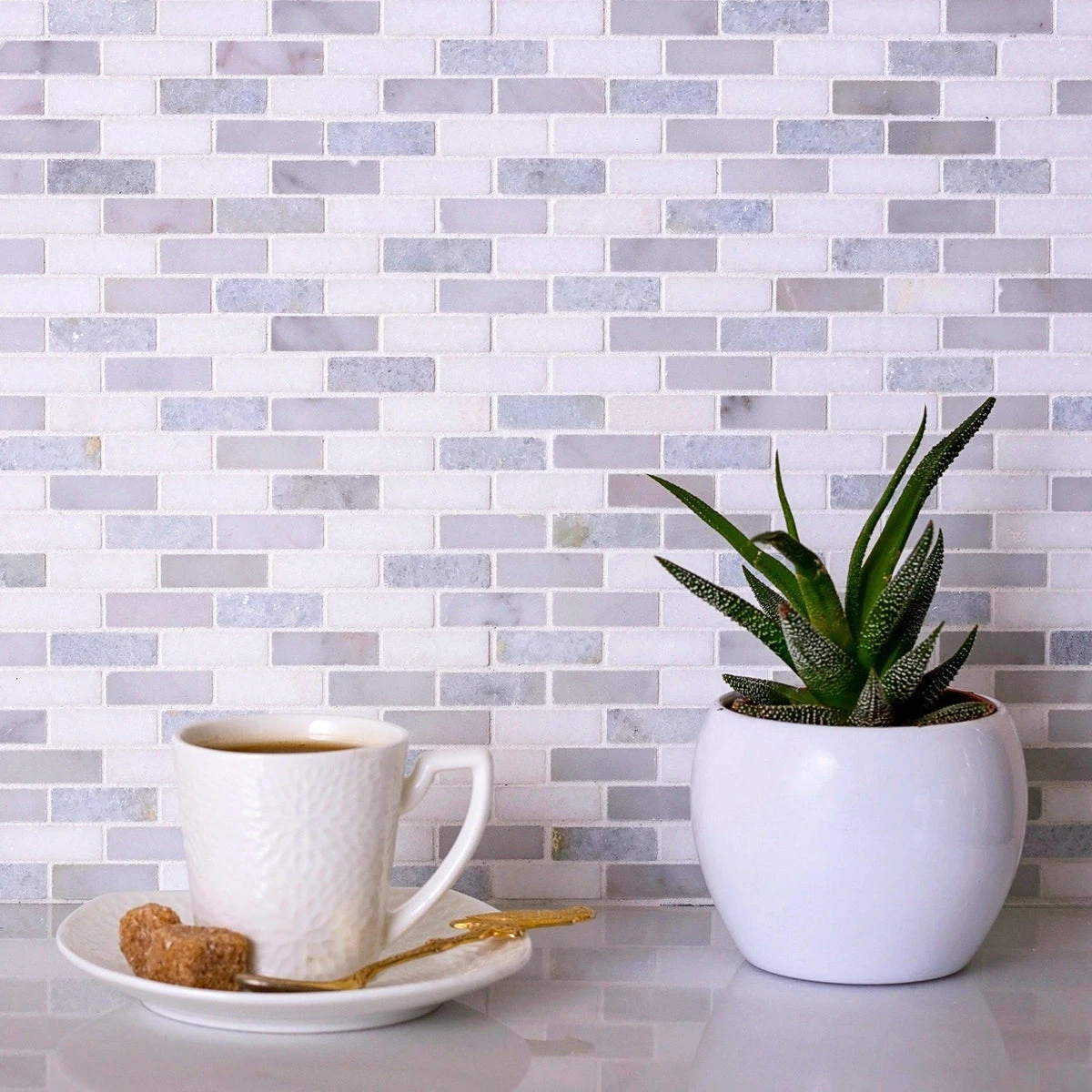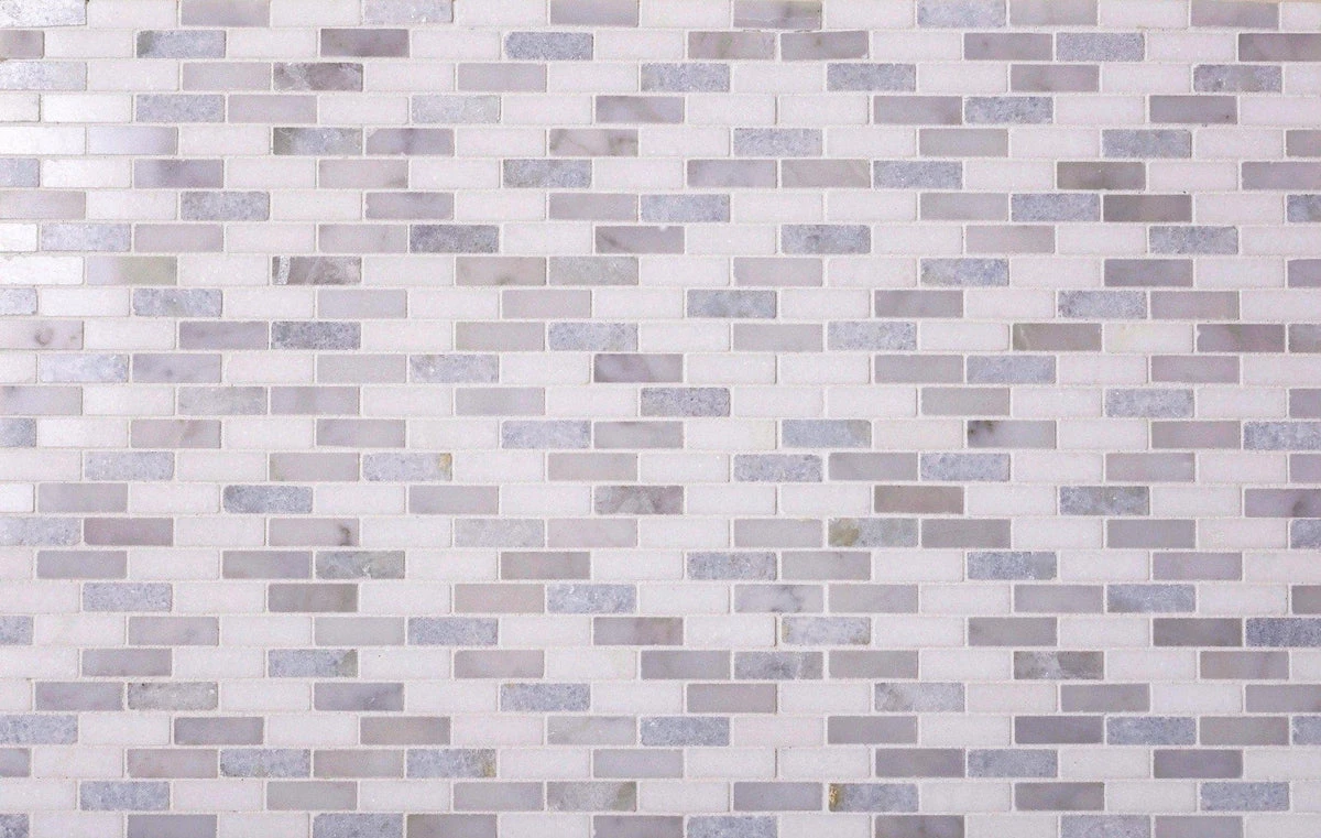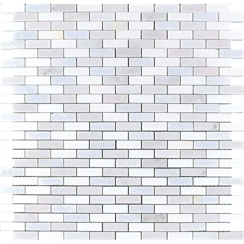 Traditional mini brick pattern meets elegant white and blue marbles in this mosaic tile. White and blue color marble tiles in the timeless brick pattern features different shades from the Thassos, Carrara and Blue Celeste marbles. Even the pale shades of blues add an appealing color to this mainly white pattern and turn these classic mosaic tiles into an eye-catcher. Create beautiful layouts and designs with coastal tone marble tiles for a more tranquil look. Brick style mosaic tiles are ideal for creating timeless kitchen backsplash, shower surrounds or many other design features for residential and commercial projects.