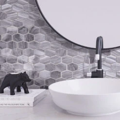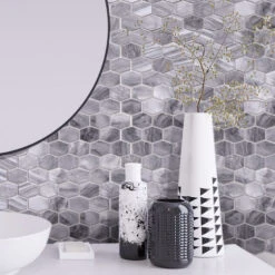 | Sold by: Sheet Sheet Size: 11.7″ x 12″ Chip Size: 2 x 2.4″ Thickness: 3/8″ Material: Bardiglio, Nuvolato Color: Gray, White Finish: Polished Mounting type: Mesh Mounted Packing info: