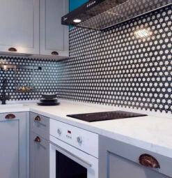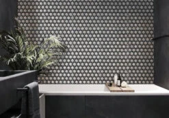 Add a contrast dramatic look to your house with our black and white hexagon mosaic tile. The classic combination of colors and a unique geometrical pattern give it an impressive appeal and a charismatic dynamic for wall and floor coverings. It is a great indoor and outdoor tile for a wide range of projects. Mesh backing makes installations simple and quick! This black and white glass mosaic tile is a long-lasting durable product that does not require any special treatment and can be installed in multiple areas as kitchens, bathrooms, living rooms, foyers, patios. Grout lines make it an ideal slip-resistant tile for pool floors or waterlines, spas, and steam rooms. This versatile black and white mosaic tile can enhance any area that would benefit from a gorgeous geometric pattern. Decorate your house with an eye-popping glass tile backsplash, a dazzling shower floor, or a bright accent and enjoy them for many years to come!