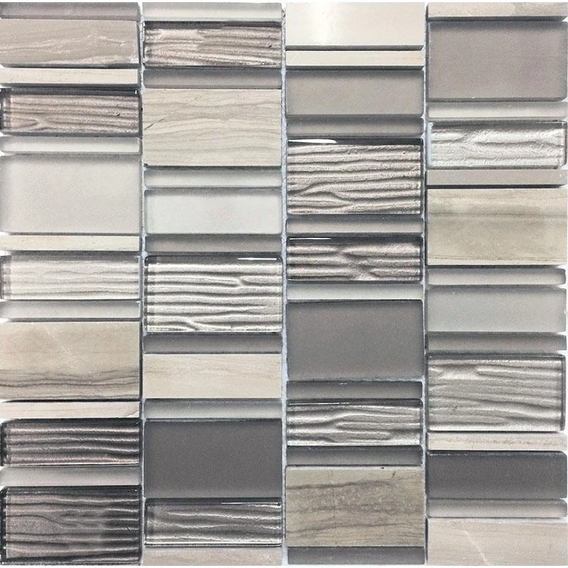 | Sold by: Sheet Sheet Size: 11.6″ x 11.7″ Chip Size: N/A Thickness: 5/16″ Material: Glass, Stone Color: Gray, Beige Finish: Polished, Matte Mounting type: Mesh Mounted Recommended Adhesive: Laticrete Glass Tile Adhesive Lite Packing info: