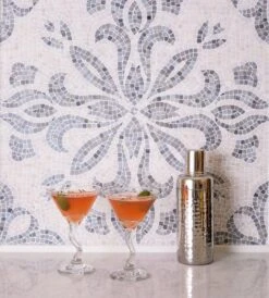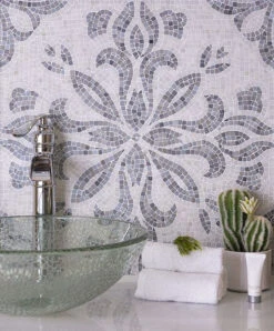 Do you want your home design to pop? With our stunning Bloom Micro Mosaic Tile, you can easily add a flourishing, striking look to any space. White and gray marble mosaics create an exotic flower pattern that can become a focal point of your interior or exterior design. The elegant white and gray micro mosaic tile pattern evokes Old World elegance that will add a Grecian touch to your ensuite shower, a Provence look to your kitchen, or a Roman design to a wet bar backsplash.