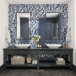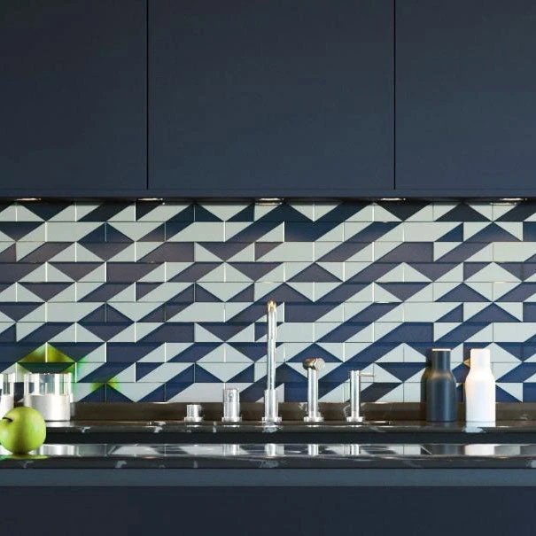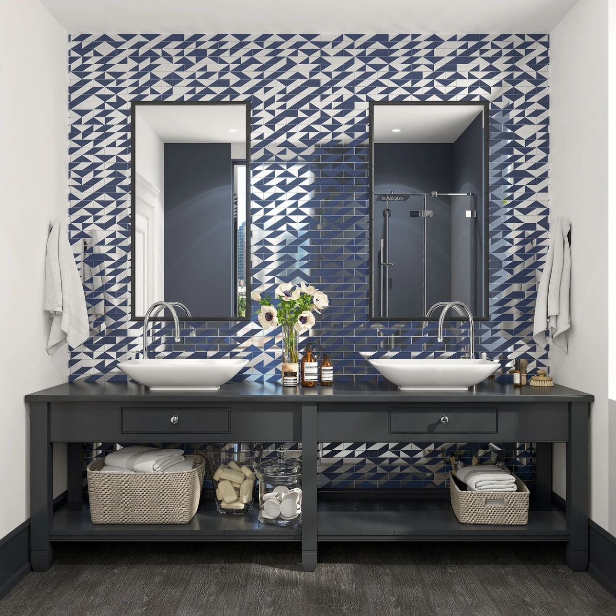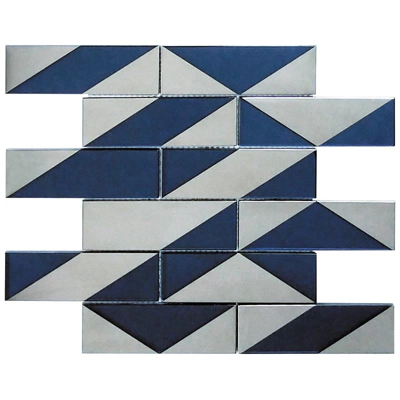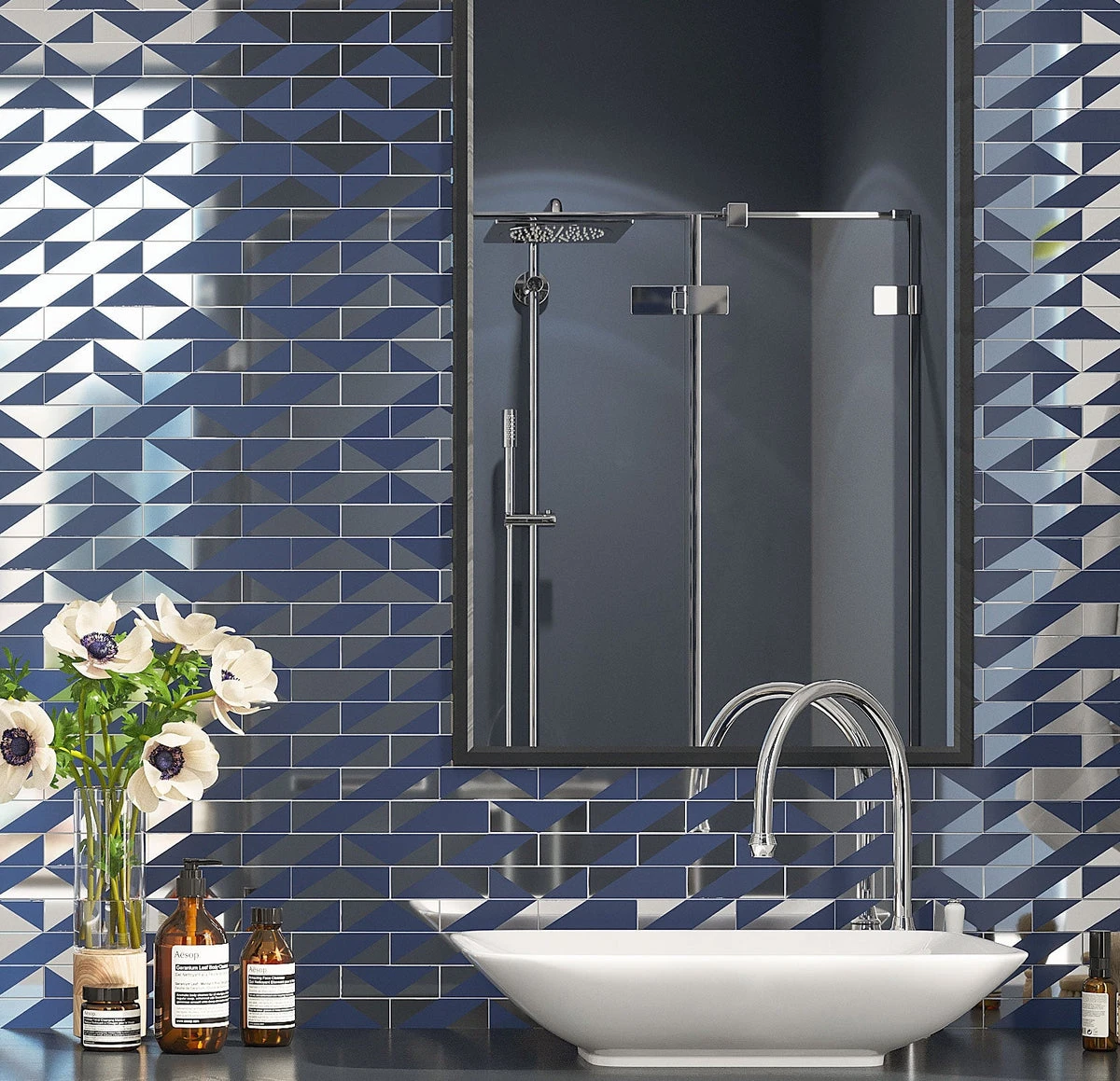 The playful geometric shapes of this Blue Deco Brick Glass Mosaic Tile combines blue glass and polished silver triangles into a stunning contemporary brick tiles! The blend of frosted glass and gleaming metallic finish adds depth and charm to this Art Deco-inspired tile pattern! The blue and silver shades create a play of light in a classic tile brick pattern – the mesh-backed mosaic tile sheets can be arranged side-by-side to create any look you like with an easily interlocking design. They make a stunning metallic kitchen tile backsplash that will add shine and color to your interior! Create a metallic glass brick fireplace surround that will give your living room or Master bedroom a vintage-inspired detail. They’re a great choice for a glass mosaic shower wall tile that can be wiped clean with ease, or a decorative tile inlay or backsplash medallion for a creative detail!