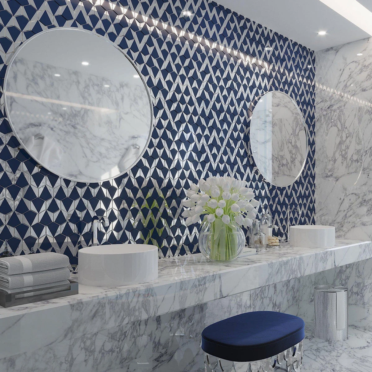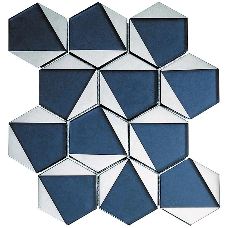 Blue and silver tones make a stunning combination in bathroom settings, and this tranquil and beautiful tile design is sure to preserve the warmth of a summer retreat year-round. You’ll especially love how this blue décor hex mosaic tile pairs effortlessly with shimmering ocean blues, bright yellows, or shades of sea green to evoke the feeling of ocean breezes on a private island. Whether you’re creating a blue and chrome coastal theme in an all-white bathroom or looking to craft a sophisticated look that works well with wood-toned fixtures and metallic fittings, this mosaic tile will bring any bathroom style to life!