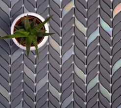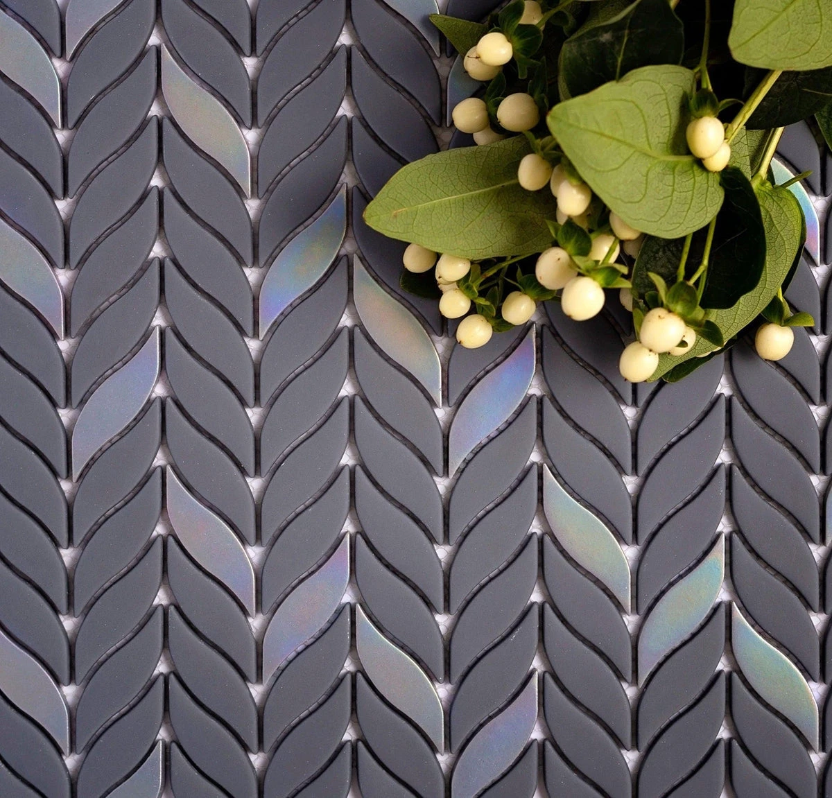 This blue leaf recycled glass mosaic tile presents the luxurious look of a classic leaf mosaic tile. It is a beautiful artistic statement piece that can be used as a feature wall in any area and is one of our most popular backsplash tiles. This blue recycled glass will add a touch of class to your home’s walls and floors. Install this mosaic tile to create a unique fireplace surround or as a feature wall in your shower or kitchen backsplash. Recycled glass tile flooring in the garden, pool area, or at the front door are beautiful choices to radiate a soothing blue hue.