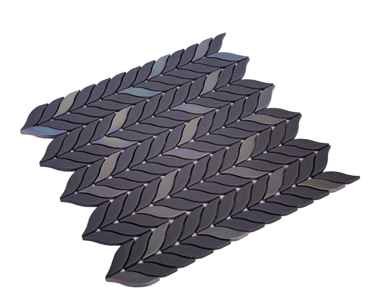 Install this tile to enhance any interior of your home with beautiful leaf-patterned tiles that are both practical and environmentally friendly. Our recycled glass tiles would be a fantastic addition to any eco-friendly home design. Every sheet has a polished finish that provides a modern, chic look. It is stain-resistant and highly durable which makes it suitable for both interior and exterior design projects. The deep blue tiles come on a sturdy mesh backing making them easy to install.
