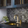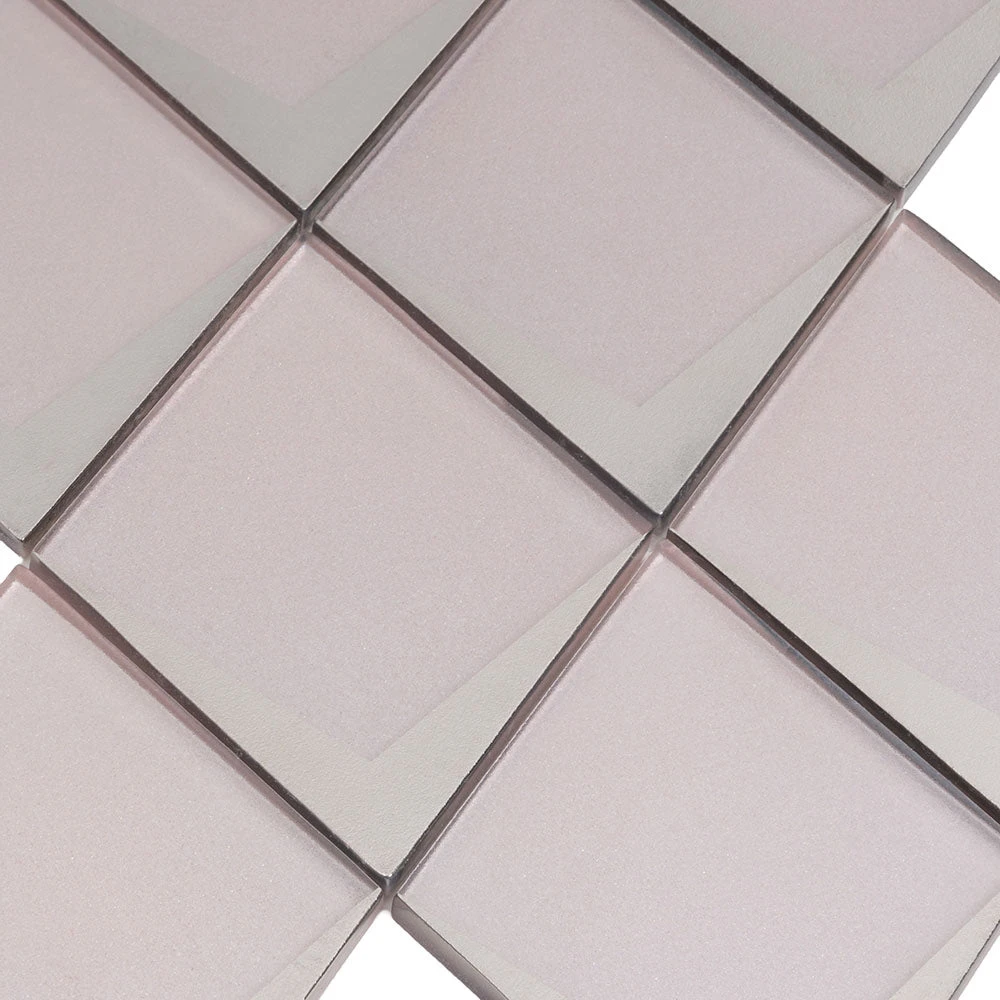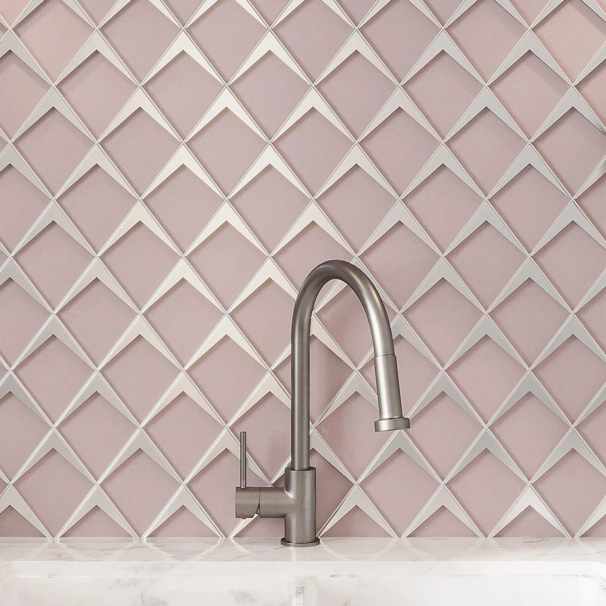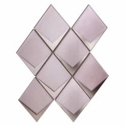 This blush pink frosted glass tile adds vintage glamour with the perfect feminine touch! The subtle pink color of the diamond glass mosaic tiles – mesh-mounted to make installing this stunning Art Deco pattern as easy as possible – adds a warm glow to your room! The metallic finish adds a modern chrome detail that brings to mind the luxury of the 1920s for a gorgeous finish to any wall installation! Create a beautiful pink bathtub surround, a matte glass kitchen backsplash, or a luminous blush fireplace surround that will give your living room a glow!