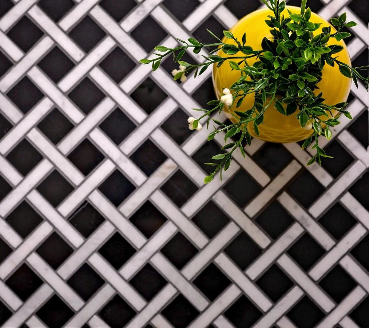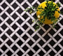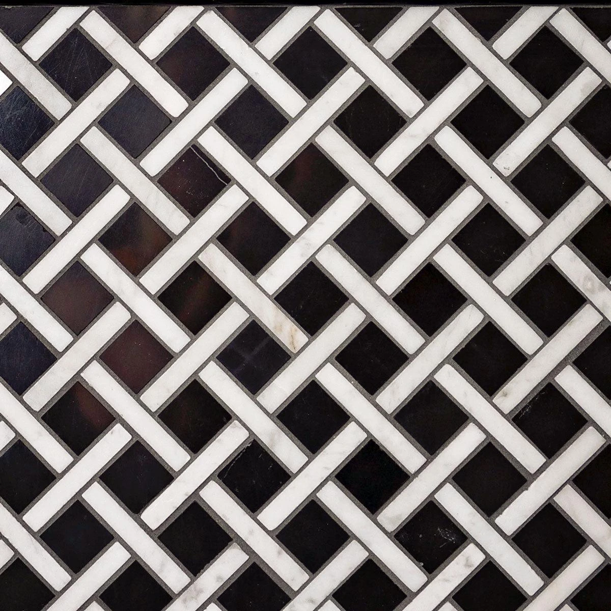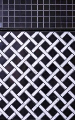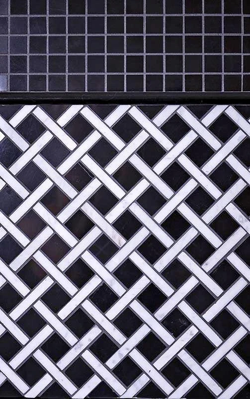 | Sold by: Sheet Sheet Size: 12″ x 12″ Chip Size: 1 x 1 + 0.4 x 2.4″ Chip size mm: 25 x 25 + 10 x 60 Thickness: 3/8″ Material: Eastern Black, Eastern White Color: Black / White Finish: Polished Mounting type: Mesh Mounted | Shop Matching Nero Marquina Pencil Liner Polished Area of use:
