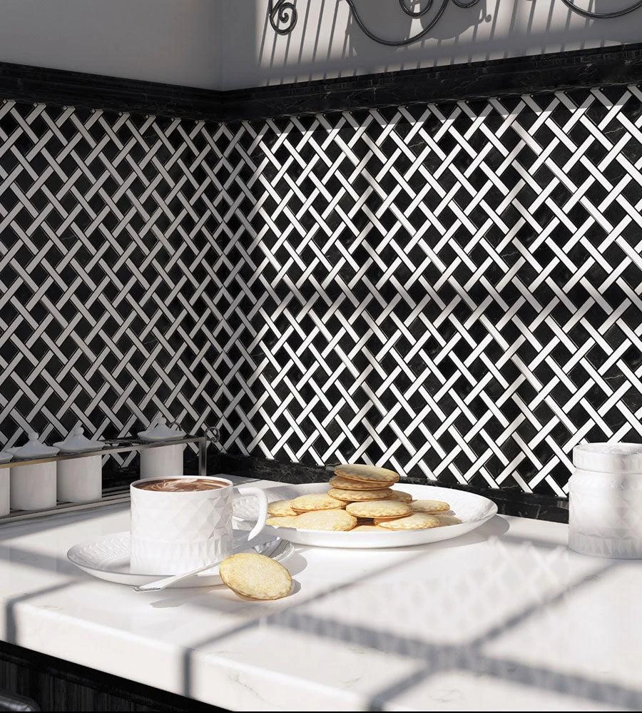 If you love natural stone beauty in a monochromatic pattern, use our Boulevard Marquina and Carrara tile in your home. This monochrome mosaic tile is made of Eastern Black and white tile pieces that are beautifully arranged in a square pattern. Since black tile white tile exudes a timeless elegance, it can suit both contemporary and classic designs. Choosing a monochrome tile will also ensure a classical simplicity that will look elegant for the years to come. This marble tile is suitable to become a kitchen backsplash if you desire a timeless monochrome effect on your walls. A dark kitchen backsplash can make a stylish impact on your décor when combined well with other light colors. Boulevard Nero marble tile is also a great option for flooring including kitchen, foyer, and bathroom applications. Due to the nature of the stone, variations in color, pattern, and veining may occur.