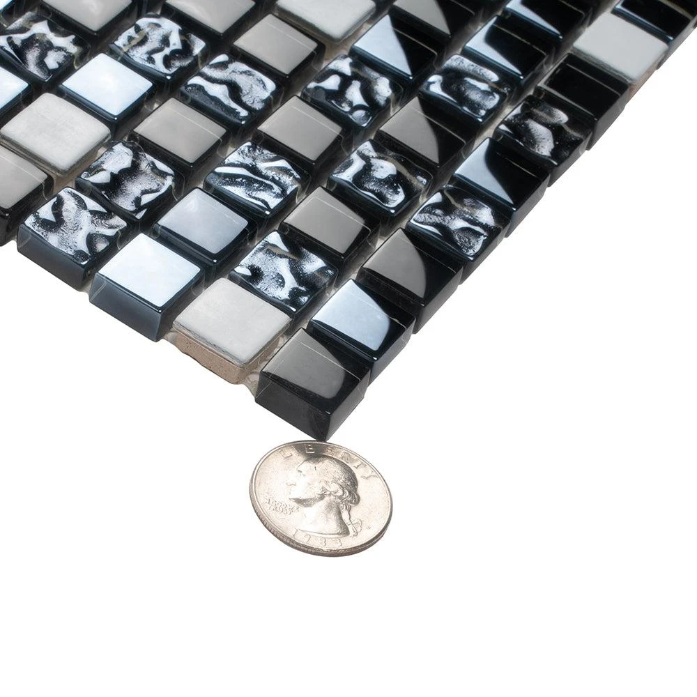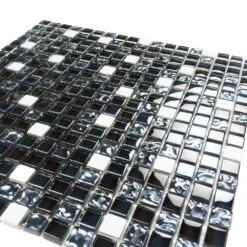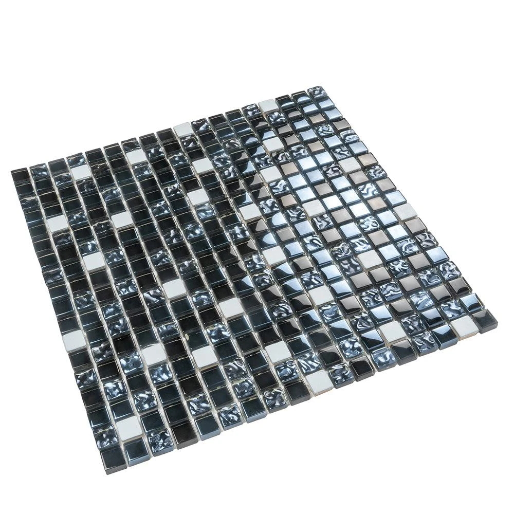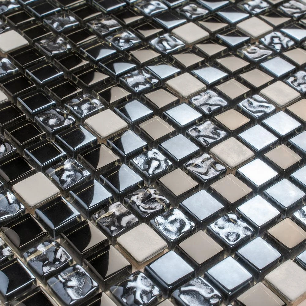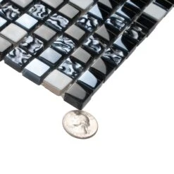 Breeze Gray Metal mosaic tile reflects light brilliantly and creates an eye-catching style from every angle. As a mix of glass and metal mix, these 1×1 metal and glass backsplash mosaic tiles are stunning showpieces that will bring a modern touch to any room Using metal mixed glass tile is an easy and versatile way to make your room sparkle. The glossy finish captures the light and adds a classy, dynamic spin to any project. This glass backsplash tile promises to give a modern edge to an otherwise traditional design. The glass is strong and resistant to chemicals, making these tiles highly durable for almost any room in your home. It offers countless design possibilities in kitchens as well as bathrooms and commercial settings. Add a captivating dark gray mosaic tile backsplash, a decorative wall, a statement strip, or decorate entire walls and floors!