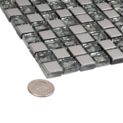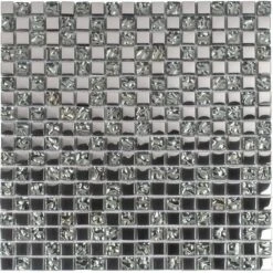 Breeze Silver glass mosaic tiles reflect light brilliantly and create an eye-catching style from every angle. These 1×1 silver and gray color glass mosaics are stunning showpieces that will bring a modern touch to any room. Using glass tile is an easy and versatile way to make your room sparkle. The glossy finish captures the light and add a classy, iridescent spin to any project. This tile promises to give a modern edge to an otherwise traditional design. The glass is strong and resistant to chemicals, making these tiles highly durable for almost any room in your home. It offers countless design possibilities in kitchens as well as bathrooms and commercial settings. Low maintenance and easy clean of glass tile will make your life so much easier.