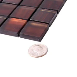 | Sold by: Sheet Sheet Size: 11.3″ x 11.3″ Chip Size: 1.2 х 1.2″/ 30 x 30 mm Thickness: 5/16″ Material: Glass Color: Brown Finish: Glossy, Matte Mounting type: Mesh Mounted Recommended Adhesive: Laticrete Glass Tile Adhesive Lite | Area of use: