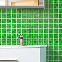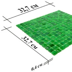 | Sold by: Sheet Sheet Size: 12” x 12″ Thickness: 1/4″ Chip size: 20 x 20 mm Mounting: Paper Facing Material: Glass Color: Green Recommended Adhesive: Laticrete Glass Tile Adhesive Lite Packing info:
