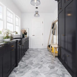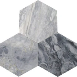 Our Calacatta Bluette marble-honed hexagon tiles combine regality with contemporary design and are a dream come true for anyone looking to integrate rare Calacatta Bluette marble tiles into their interior design with a twist. This marble is perhaps the most coveted of the rarer marble varieties in the world and this hexagonal marble tile is the best way to easily integrate it into your existing interior design concept. Whether you are looking to reimagine art deco or contemporary design styles in your home or want an extravagant touch to an otherwise modern setting, these hexagonal tiles are a vision wherever they are installed. A part of the rising popularity of hexagonal geometric tiles was that they give a super clean look making them the perfect choice for bathrooms at the turn of the century as well as in today’s modern times.