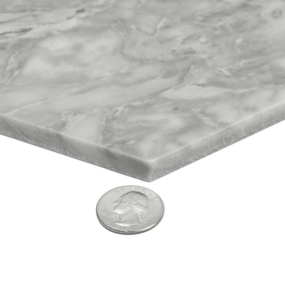 | Sold by: Sheet Sheet Size: 10″ Width: n/a Length: n/a Material: Calacatta Bluette Thickness: 3/8″ Color: Gray Finish: Polished Packing info: