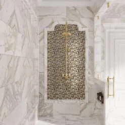 The classic beauty of Calacatta Gold patterns are given a matte finish in our beautiful large format honed tiles! These imported Italian marble tiles measure 12″ x 24″ and come in boxes that cover 10 square feet. They showcase the signature veins of natural golden color that swirl through the stone exclusive to some of Italy’s finest quarry, with a silky feel thanks to the honing of the marble.