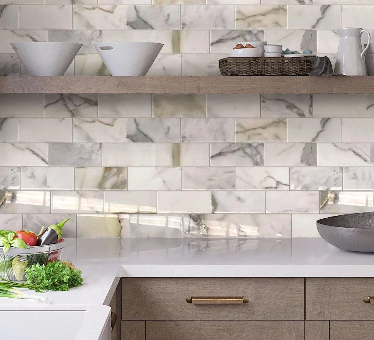*Natural stone tiles including Calacatta Marble will feature natural variation in the veining and pattern from tile to tile. If you would like to preview a carton of marble tiles before ordering, please use the button to Request Current Lot photos and our team will send pictures of the tiles ready to ship to provide a gauge of the variance from tile to tile.