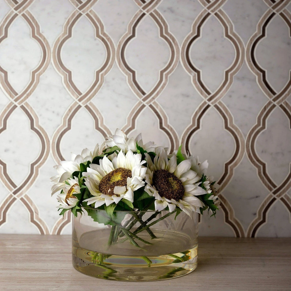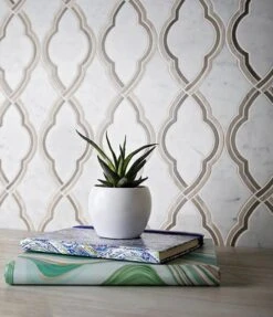 Tired of the same old tiles? Upgrade your living space to polished marble with our Carrara Arabesque Tile with Wooden Beige Lines. These waterjets create a unique marbled look that will make any home feel luxurious, trendy and chic. Durably crafted in glossy tile finish with an iridescent sheen, it is perfect for indoor or outdoor use in various rooms around the house – from bathroom to kitchen, dining room to foyer. These elegant lantern-like patterns are versatile enough to fit into any color scheme while amplifying your home’s design aesthetic.