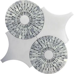 Whether your style is contemporary or ultra-modern, our Carrara Circles Mosaic will be a captivating addition to any design. Tiny chips of natural marble create an elegant geometric pattern and deliver a timeless look. Trendy grey tile décor delicately highlights pure white Thassos marble and brings a gentle sophisticated touch to any color scheme. The glossy mosaic finish adds a slight shimmer and helps visually enlarge and light up any room. Installation is fast and simple because all the sheets are interlocked. Endurance of materials, slip-resistance, and no special maintenance make this product the best tile for shower floor, bathroom and kitchen walls, general light traffic floors, decks, patios, and other applications. Create a marvelous white kitchen backsplash, a dazzling niche or feature wall. Whether you use this tile indoors or outdoors, it will be an elegant visual attraction of your design.