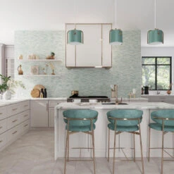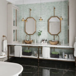 The large format of this tile creates an unfussy appearance compared to smaller tiles which makes it suitable for a contemporary look. Whether it’s a bathroom, shower, living room, or commercial lobby, the minimal grout joints allow for an almost seamless appearance, especially if you choose a grout color that closely matches the color of this green tile.