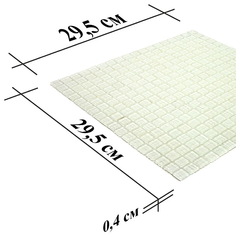 | Sold by: Sheet Sheet Size: 11.6” x 11.6″ Thickness: 1/4″ Chip size: 15 x 15 mm Mounting: Paper Facing Material: Glass Color: Clear Recommended Adhesive: Laticrete Glass Tile Adhesive Lite Packing info:
