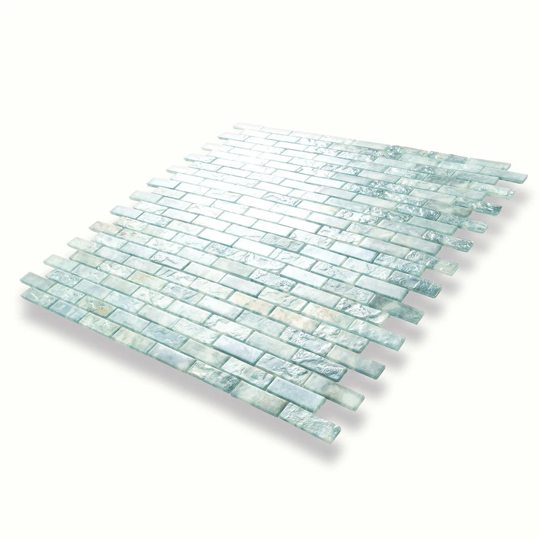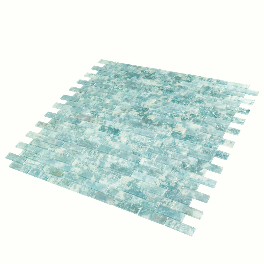 | Sold by: Sheet Sheet Size: 11.7″ x 11.7″ Thickness: 1/4″ Material: Glass Color: Aqua Finish: Matte Collection: Mermaid Dreams Mounting Type: Mesh-Mounted Packing info: