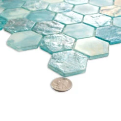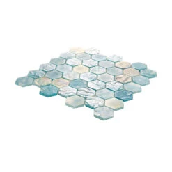 What’s more, the small pattern makes this hexagon tile a highly functional choice for flooring as the added grout lines add texture and non-slip properties in wet areas. Be it your next shower, swimming pool, or spa tile you’ll enjoy looking at it for years to come. Whether you live near the ocean or love a coastal aesthetic, this glass hexagon tile will define your space’s style.