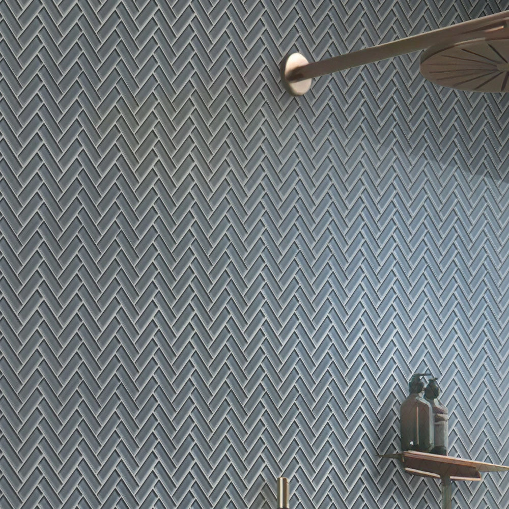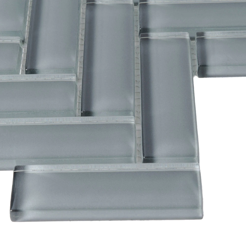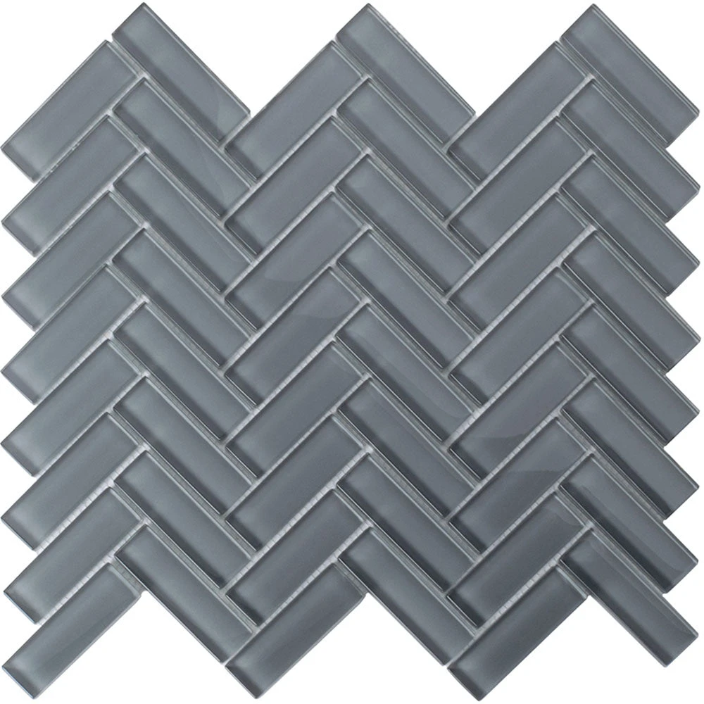 The herringbone tile pattern is a timeless, classic design that is always in style. This cool gray mosaic tile features tiny rectangular glass pieces that meet at straight edges and form a perfect zigzag shape. The herringbone tile pattern creates such an eye illusion that it can easily expand a small room visually. Herringbone tiles also add some extra detail to your space without going over the top and being too trendy. This mosaic tile in the ever-classic zigzag pattern can add a designer look to kitchens, bathrooms, or fireplace surrounds. Use this cool gray herringbone glass tile as a kitchen backsplash, accent, or floor tile in your bathrooms where you want a traditional pattern but also some decorative attention.