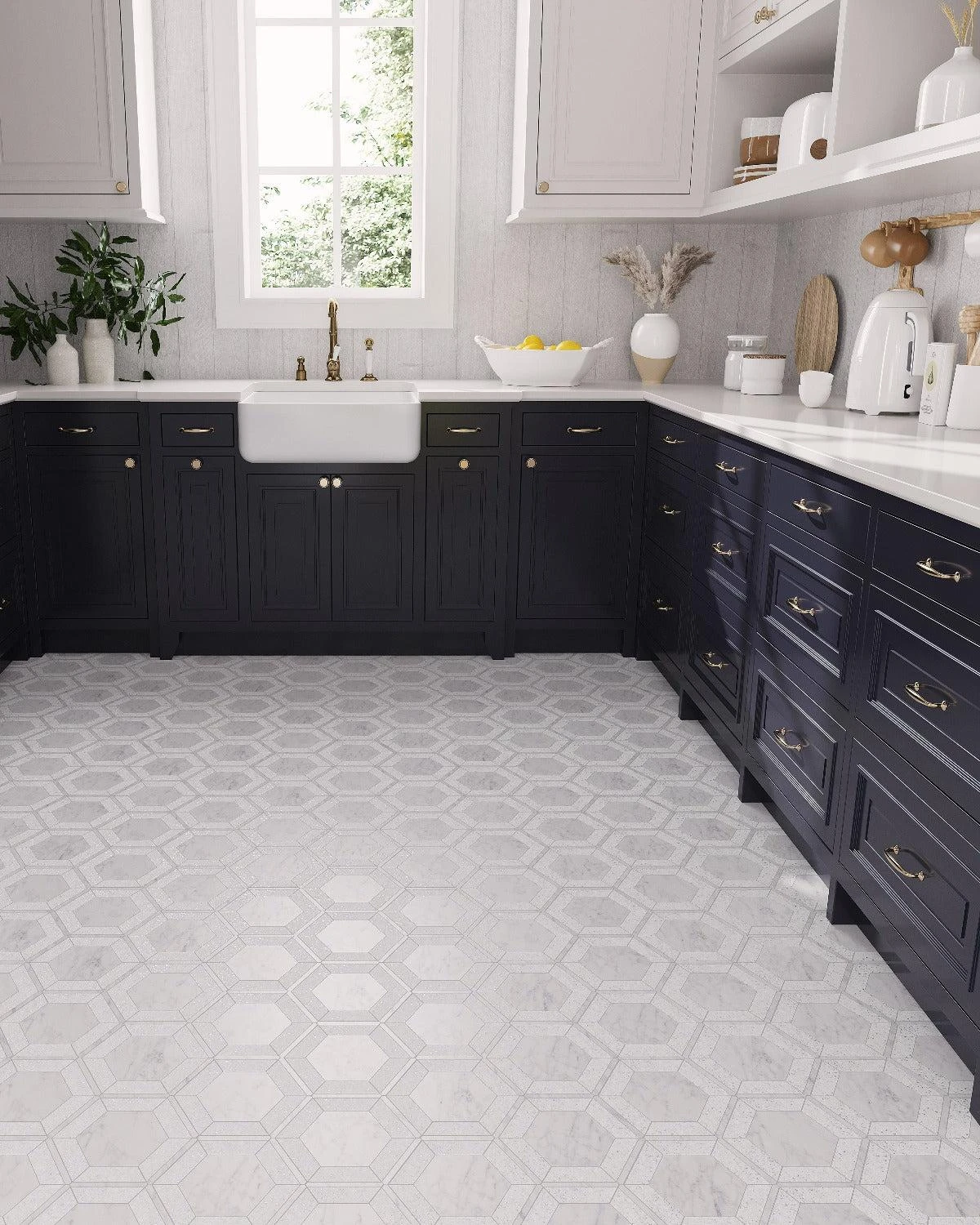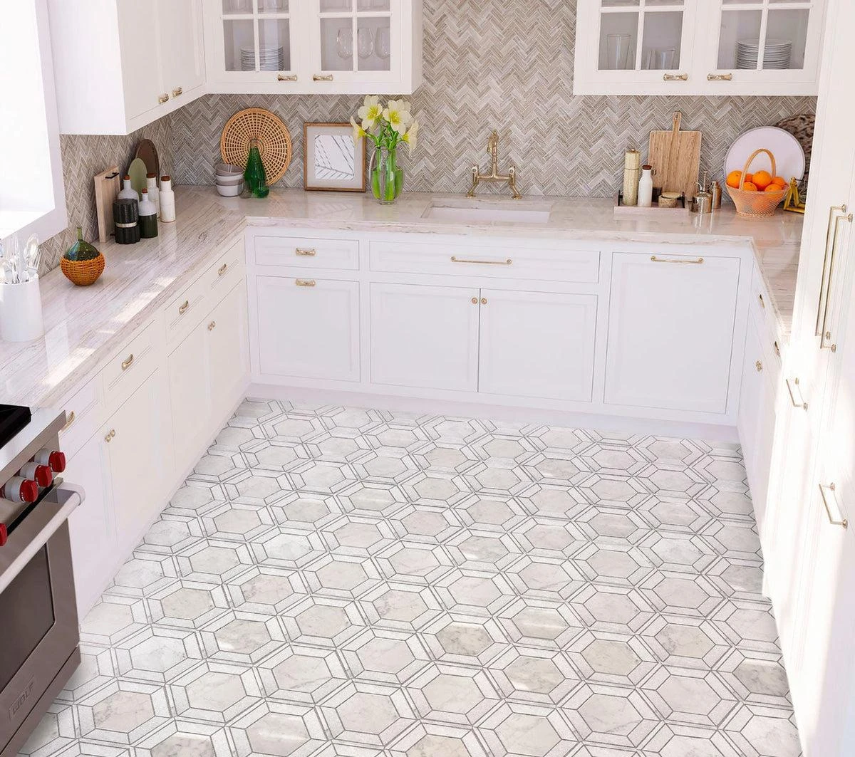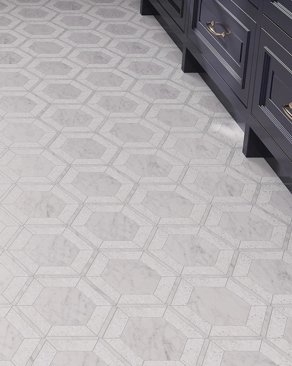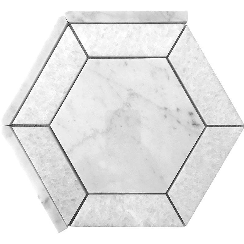The beautiful combination of Bianco Carrara and Crystal White marble tiles transform any home into a magnificent space. This cosmos hex tile adds fun and vibrance to a variety of settings including your kitchens, bathrooms, and living rooms. With a refreshing twist on timeless classic marble, our high-quality hexagon tiles give a modern simplistic look that can be integrated into any design from traditional to modern projects. Create a distinctive focal point with this white marble tile for walls, residential and commercial floors, or backsplashes in bathrooms and kitchen.
