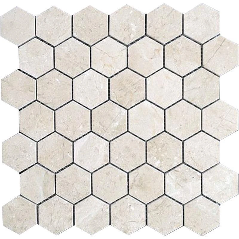 Crema Marfil 2 Inch Hexagon Polished tile is a great design choice where you desire a graphic pattern. The warm, comfortable tones of Crema Marfil marble tile is suitable for a subtle backdrop and can coordinate beautifully with a wide range of other colors. Hexagon tile looks great as a backsplash design but is also durable enough for your tile flooring projects. These marble tiles are perfect for tile flooring in your showers since they provide a safe surface with the anti-slip resistance you need in wet areas due to the small hexagon pattern. Hexagon tile can also give your walls a bit of movement when used as a backsplash in kitchens and bathrooms. Your backsplash will never go out of style with this pattern and will remain classic for many years to come.