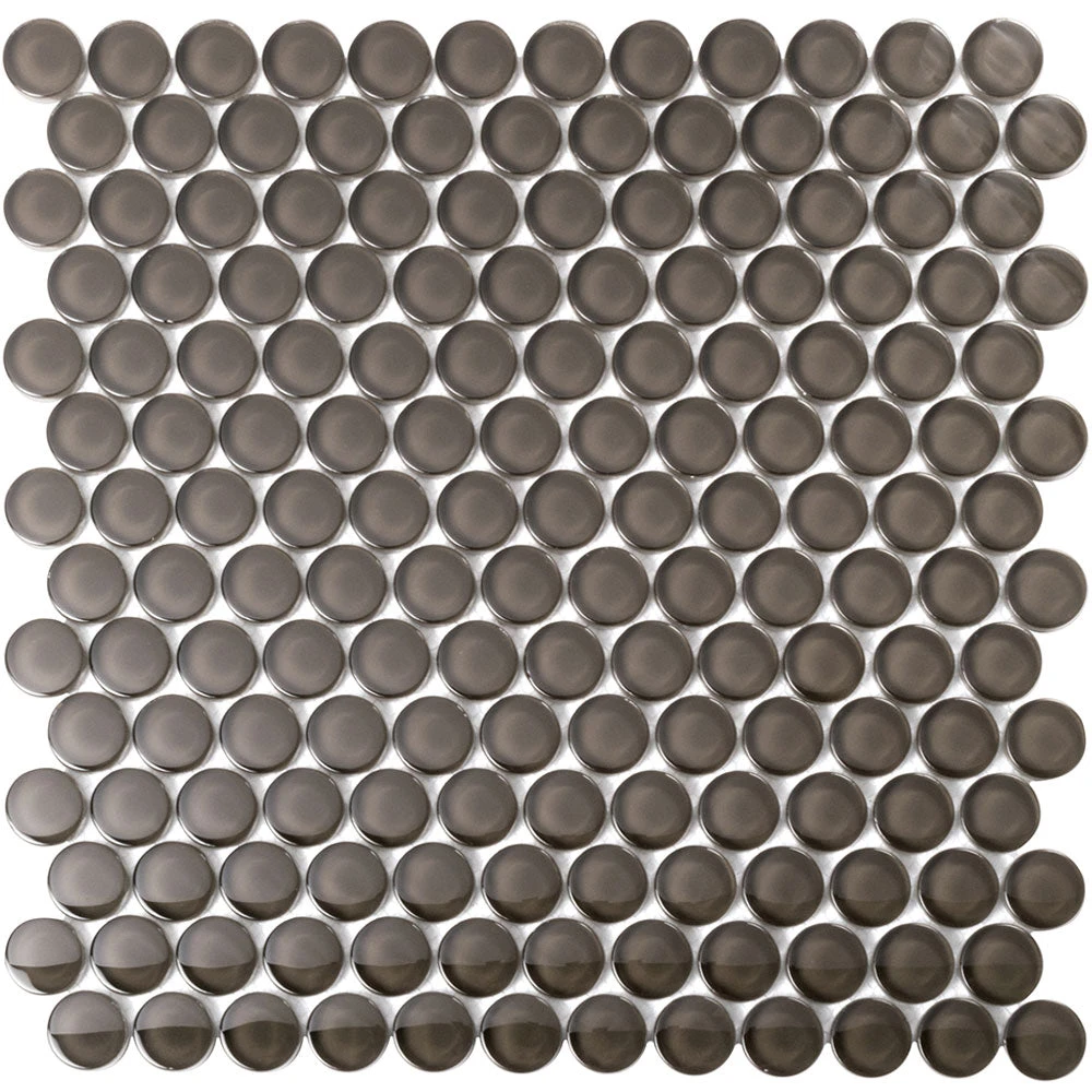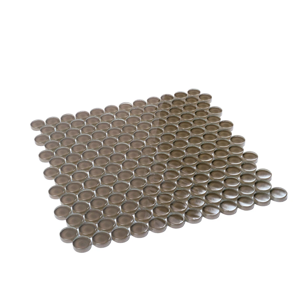 Many homeowners are looking for structural design elements like tiles in simple and understated styles to pair with bright and elaborate decor elements. These dark grey penny round glass tiles are the perfect backdrop to any artistic statement you are trying to make in any room in the house. The dark grey glass adds pleasing dimension to these round tiles. Use this penny tile design to create the illusion of a larger room or a long wall and let the gleam from the glass tiles do the talking. The dramatic sheen of this penny round tile is effortlessly chic and modern while at the same time proving remarkably practical for high traffic areas such as your bathroom and the kitchen so it can be used easily for flooring.