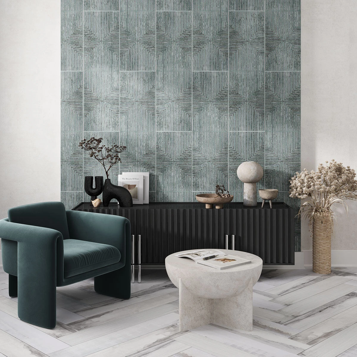 Add unique textural detail to indoor walls, backsplash designs, showers, and accent details with Decor Sospiro’s 12×40 Ocean Ceramic Tile. Its subtly textured ocean-green surface produces a calming effect that brings a sophisticated, subtle edge to any interior space.