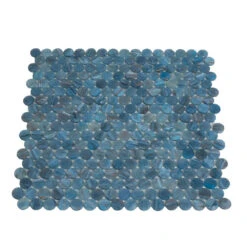 Blue glass tile highlights the water making it appear more blue and incandescent and creating a regal outlook reminiscent of a luxurious lifestyle. Beyond that, this material is durable and slip-resistant, so you’ll appreciate installing it in your pool or hot tub area or on your patio. The square sheet shape and mesh mount backing of these penny round tiles save time and effort during installation!